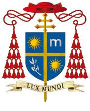 문장 하단에는 유 추기경 사목표어인 ‘Lux Mundi’(세상의 빛)가 교회 전통에 따라 검은색 라틴어로 쓰여있다.