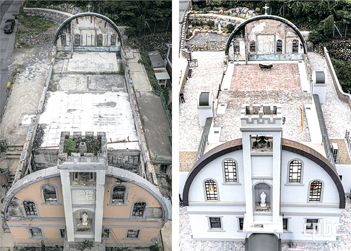 원주교구는 6일 교구장 조규만 주교 주례로 상동공소 봉헌 미사를 거행했다. 사진은 복원 전(왼쪽) 상동공소와 복원 후 상동공소의 모습. 황지본당 제공