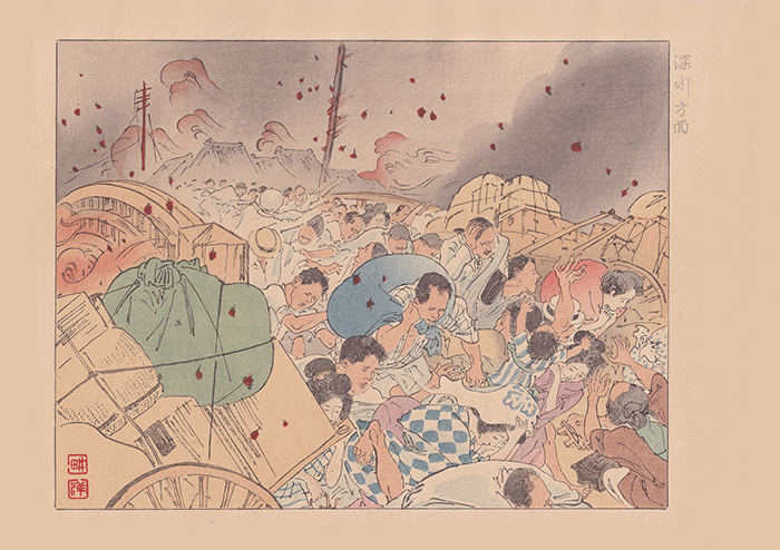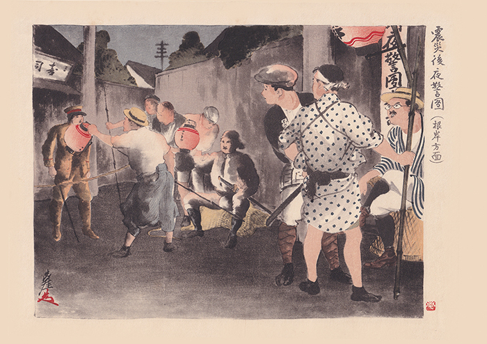관동대지진 관련 「다이쇼진재화집」(1926)에 묘사된 자경단의 모습. 산지천갤러리 제공