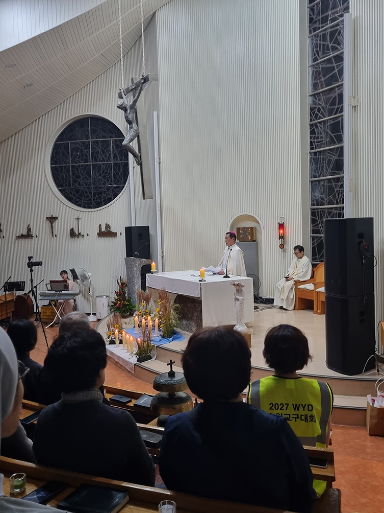 문 주교는 강론에서 “10월의 첫날인 오늘 세계청년대회를 준비하며 성모님께 더욱 큰 정성으로 묵주기도를 드렸다”며 “묵주기도는 저희와 천사들을 결합시켜주는 사랑의 끈으로, 교회는 어렵거나 위기의 순간 때마다 묵주기도를 통해 성모님께 의탁해왔다”고 전했다. 이어 “세계청년대회를 앞두고 교우들이 묵주기도로 힘을 모아 WYD 사무국을 중심으로 대회를 잘 준비해나가길 바란다”고 당부했다.