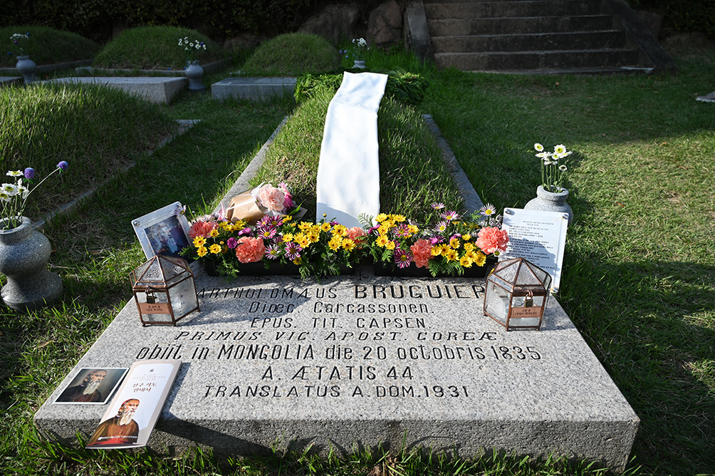 초대 조선대목구장 ‘하느님의 종’ 바르톨로메오 브뤼기에르 주교 선종 190주기인 20일 추모·현양 대미사가 거행됐다. 브뤼기에르 주교 무덤이 있는 서울대교구 용산성당 성직자 묘역에서다. 미사는 서울대교구장 정순택 대주교가 주례했다.