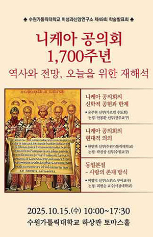 또 수원가톨릭대 교수 한민택 신부가 ‘니케아 공의회의 현대적 의의’를, 스위스 쿠어교구 이영덕 신부가 ‘동일 본질 - 사랑의 존재 방식’을 주제로 각각 발표했다.