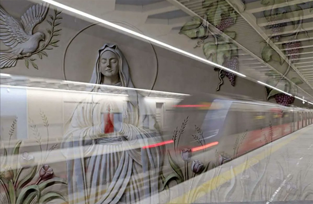 AFP에 따르면 이 역은 10여 년에 걸친 공사 끝에 완공됐다. 역사 안에는 아치형 중앙홀과 돔에 성모님을 상징하는 프레스코화 등 예술 작품이 설치됐다. 성전 그림 옆으로 성모 마리아를 기리는 벽화도 그려졌다. 조각가 티나 타리그 메흐르는 “역사를 지나는 승객들이 이웃 종교를 존중할 수 있도록 디자인했다. 특히 그리스도교를 이해하는 것이 중요하다는 의미”라고 설명했다.