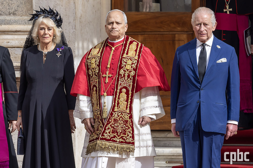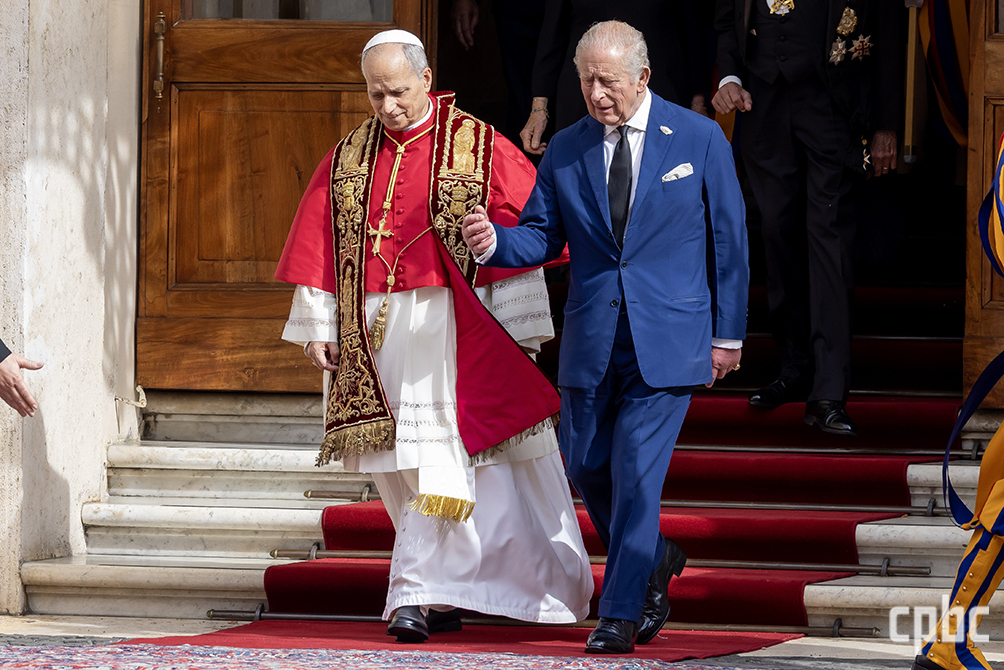 레오 14세 교황과 찰스 3세 영국 국왕이 10월 23일 바티칸 사도궁에서 비공개 회동을 마친 뒤 나란히 나오고 있다. OSV