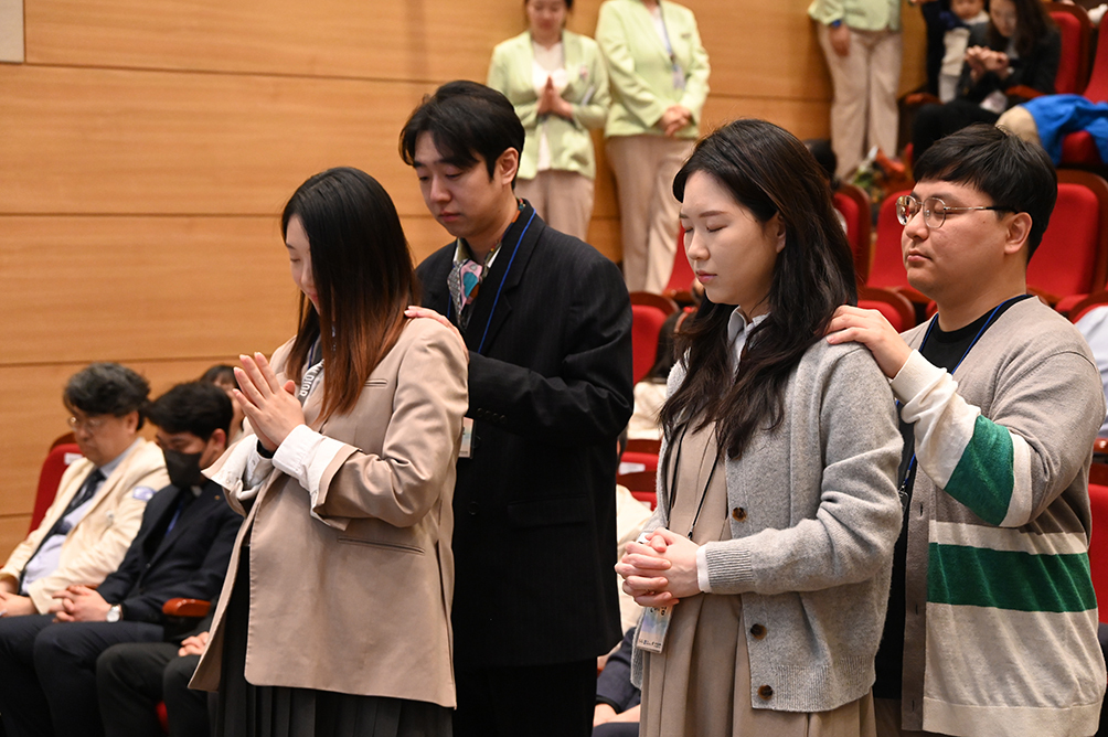 이날 안수와 축복을 받은 류아름·강상준씨 부부는 “이렇게 큰 축하를 받을 줄 몰랐는데, 무척 기쁘다”며 “임신을 준비하는 내내 원만한 부부관계를 함께 돌아보며 아이를 기다리다 보니 보통의 난임 부부처럼 어렵고 힘들게 여기기보다 기쁜 마음으로 지내올 수 있어 좋았다”고 전했다.