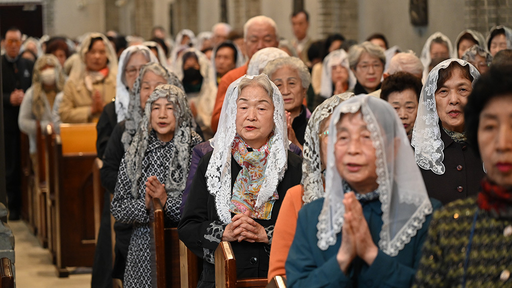 10월 21일 서울대교구 사목국 노인사목팀이 마련한 ‘시니어의 희년 감사미사’에서 어르신들이 미사를 봉헌하고 있다.