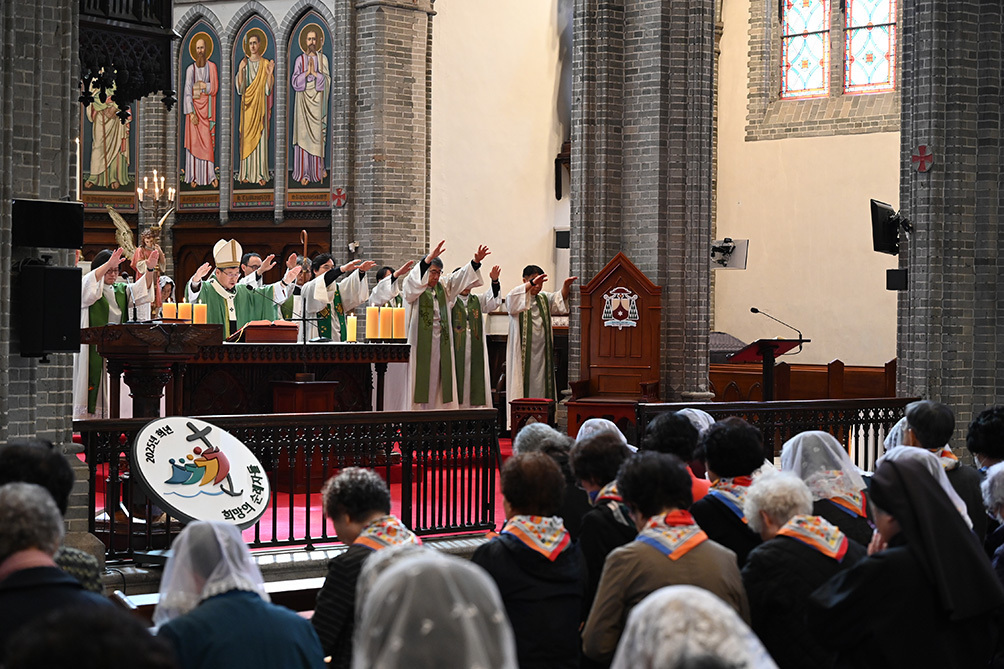 10월 21일 어르신 850여 명이 자리를 채운 서울대교구 주교좌 명동대성당. 교구 사목국 노인사목팀(담당 박민우 신부)이 마련한 ‘시니어의 희년 감사미사’ 강론에서 교구장 정순택 대주교는 어르신들에게 “삶으로 신앙을 손자녀들에게 전해달라”고 당부했다.