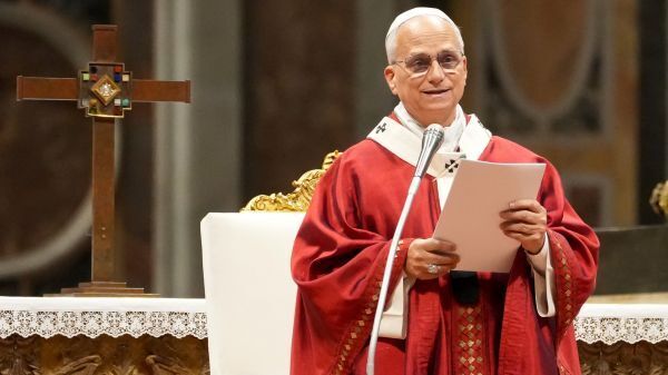 레오 14세 교황이 10월 27일 바티칸 성 베드로 대성당에서 로마 교황청립 대학생들과 함께 미사를 집전하며 강론을 하고 있다. OSV