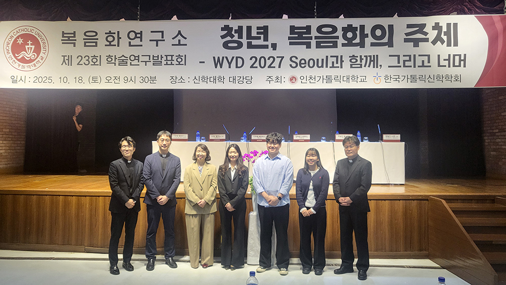 2027 서울 세계청년대회(WYD)가 일회성 국제 행사로 끝나는 것이 아닌, 청년 사목의 본질적 목표인 개별 성소를 발견하는 여정이 돼야 한다는 제언이 나왔다. 인천가톨릭대학교 복음화연구소(소장 명형진 신부)가 10월 18일 신학대학 대강당에서 ‘청년, 복음화의 주체-WYD 2027 Seoul과 함께, 그리고 너머’를 주제로 연 제23회 학술연구 발표회에서다.
