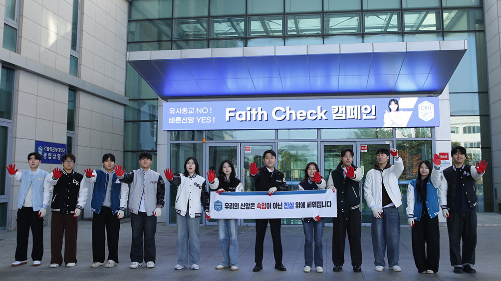 가톨릭관동대학교는 10월 29일 유사종교 피해 예방과 올바른 신앙문화 정착을 위한 ‘Faith Check 캠페인’ 선포식을 열었다. 강릉 지역 대학가에서 유사종교 피해 사례가 늘어나자 총학생회를 중심으로 학생들이 직접 나선 것이다.