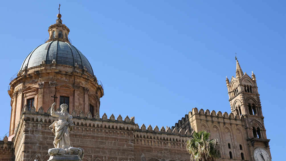 이탈리아 시칠리아 팔레르모 대성당 앞 성녀 실비아 석상. 실비아는 팔레르모의 수호 성녀다.