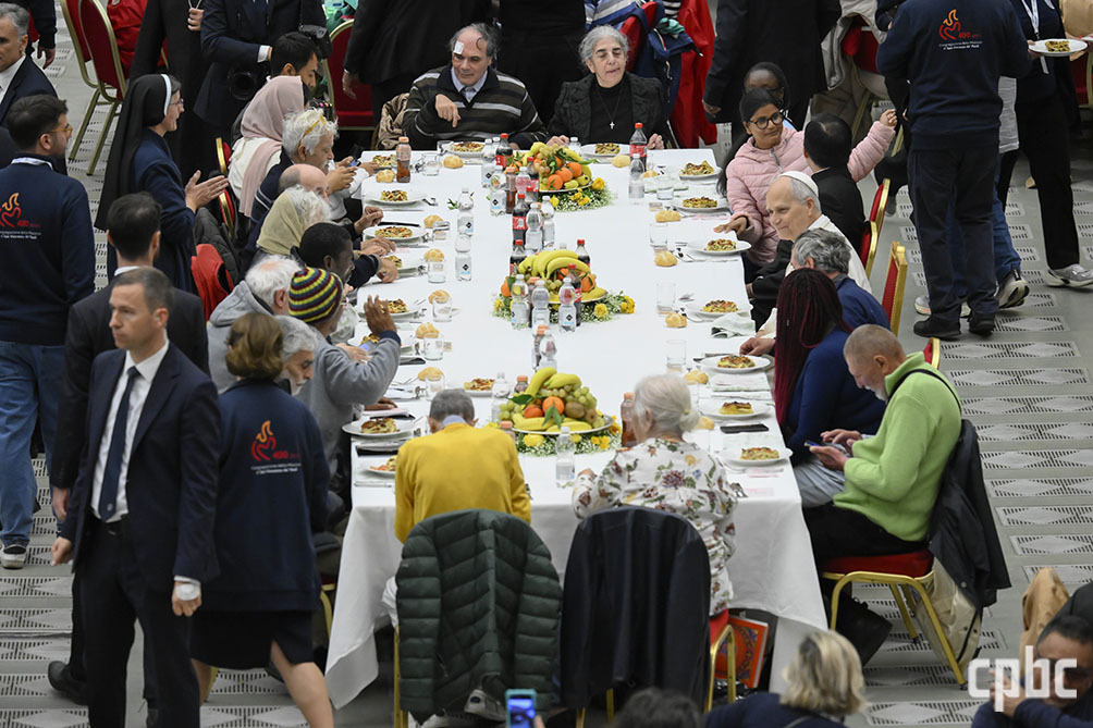 16일 드넓은 식당으로 탈바꿈한 바티칸 바오로 6세 홀에 초대된 이들은 자신들처럼 전 세계에서 폭력과 전쟁·굶주림으로 고통받는 또 다른 이웃을 기억했다. 이 자리에는 공장 문을 닫으면서 일자리를 잃은 이, 노인이지만 어떻게든 일하면서 생활비를 버는 사람, 사기당한 이, 아픈 이 등 다양한 사연을 가진 사람들이 교황과 함께했다. 그러나 어려움 속에도 이들은 희망을 노래했다.