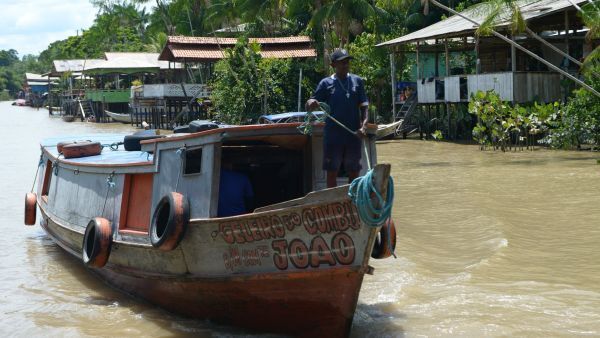 근 콤부 섬 주변을 항해하는 보트. 벨렝 유엔 기후 변화 협약(COP30 )을 개최하는 곳입니다. OSV