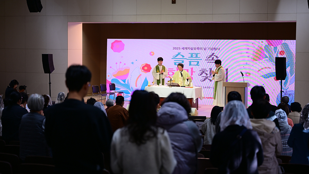 ‘자살예방을 함께하는 사람들과 자살유가족 및 고인을 위한 미사’도 봉헌됐다. 한마음한몸운동본부장 오승원 신부는 강론에서 “스스로 목숨을 끊은 이들은 삶을 부정한 것이 아니라, 삶을 헤쳐나갈 힘을 잃고 더는 걸어나가지 못한 ‘길 잃은 양’과 같다”며 “하느님께서는 그들을 당신 손길이 가장 많이 필요했던 이들로 보시고 더 많은 애정과 자비로 품어주실 것”이라고 위로했다. 아울러 “유가족의 슬픔과 고통은 사라지지 않겠지만, ‘고통은 살아있는 기도’라는 말처럼 그 아픔이 더 깊은 기도의 자리로 이끌어 줄 것”이라며 “세상 사람들의 시선보다 하느님의 시선으로 돌아가신 분들을 바라보며 용기 내어 살아가기를 바란다”고 격려했다.