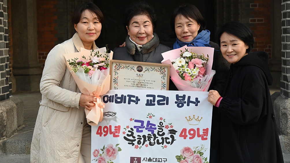 유구영씨는 “대학 졸업 후 중학교 영어 교사를 하면서 예비 신자 교리 봉사를 병행했다”며 “반세기 동안 봉사할 수 있어 무척 기쁘다”고 말했다. 하영수씨는 “숨 쉬듯 봉사하다 보니 어느덧 50년이 다 됐다”며 “인터넷 통신 교리가 없을 때는 방문 교리도 많이 했다. 하다 보니 밤 12시가 넘은 적도 잦았다”고 지난날을 회고했다. 이날 하씨와 함께 온 송천동본당 예비 신자 교리 봉사자 박경림(에스테르)씨는 “지금도 후배 봉사자들이 편하도록 글을 모르거나 귀가 안 들리는 예비 신자들을 전담하신다”며 존경과 감사의 마음을 전했다.