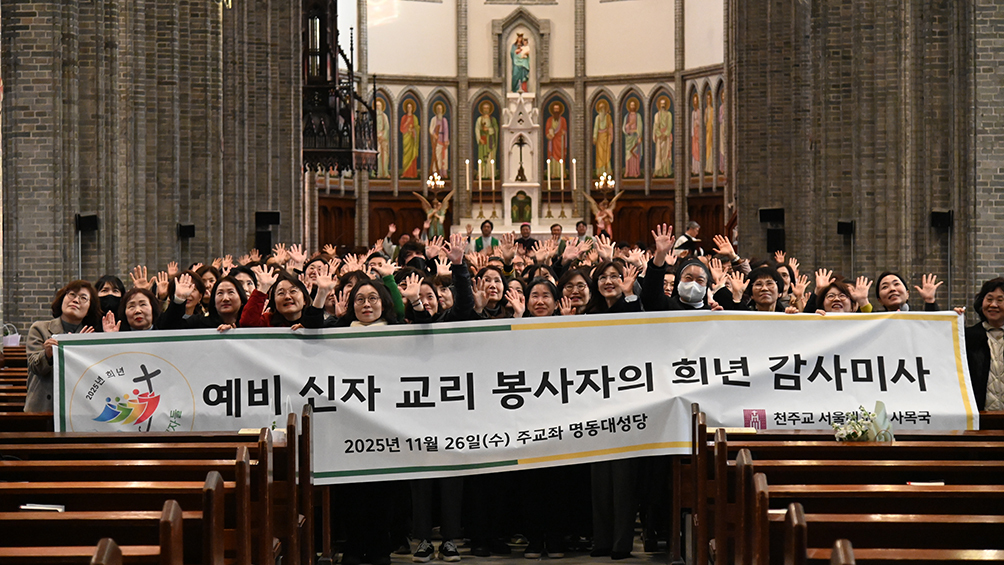 정 대주교는 또 “예비 신자 교리는 단순히 지식을 전달하는 시간이 아니라, 예비 신자들이 하느님과 새로운 관계를 맺고 교회 공동체 안에서 새 출발을 할 수 있도록 돕는 여정”이라며 “교구는 2021년 새 예비 신자 교리서 「하느님을 찾는 사람들」을 발행했고, 6년간 2000여 명의 교리·나눔 봉사자를 양성하고 파견했다”고 덧붙였다. 이날 미사에는 교구 각 본당 예비 신자 교리 봉사자와 2025년 하반기 나눔 봉사자 교육 수료생 등 400여 명이 참여했다.