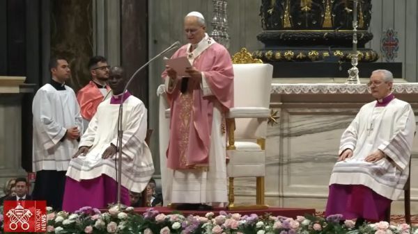 레오 14세 교황이 14일 성 베드로 대성전에서 감옥에 갇힌 이들의 희년 미사에서 강론을 하고 있다. 바티칸 유튜브 캡처
