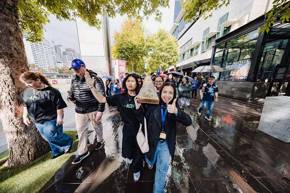 멜버른에서 개최된 호주청년대회(ACYF)에 참가한 청년들이 11월 30일 WYD 십자가와 성모 성화를 들고 도보 순례를 하고 있다. ACYF/멜버른대교구 제공