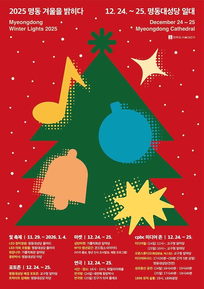 서울대교구(교구장 정순택 대주교)가 주님 성탄 대축일을 맞아 12월 24~25일 이틀간 주교좌 명동대성당 일대에서 성탄 축제 ‘2025 명동, 겨울을 밝히다’를 연다.