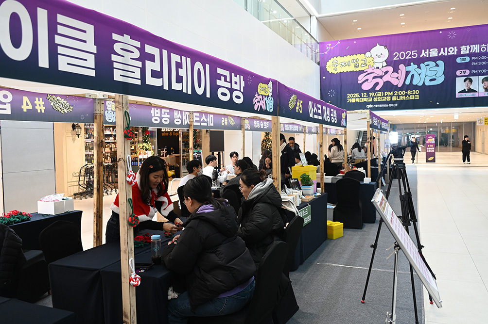 이 시대 청춘들의 지친 마음을 위로하며 그들의 고민을 나누고 어루만지는 소통의 장이 펼쳐졌다. 12월 19일 서울 반포 가톨릭대 성의교정 옴니버스파크에서 cpbc 가톨릭평화방송·평화신문이 주최·주관한 청년 콘서트 ‘숙제말고 축제처럼’이다. 올해도 서울시와 함께 3회째를 맞은 이번 행사는 △청년 체험 부스 △청년 단편영화 상영 △청년 콘서트 등으로 꾸며졌다.