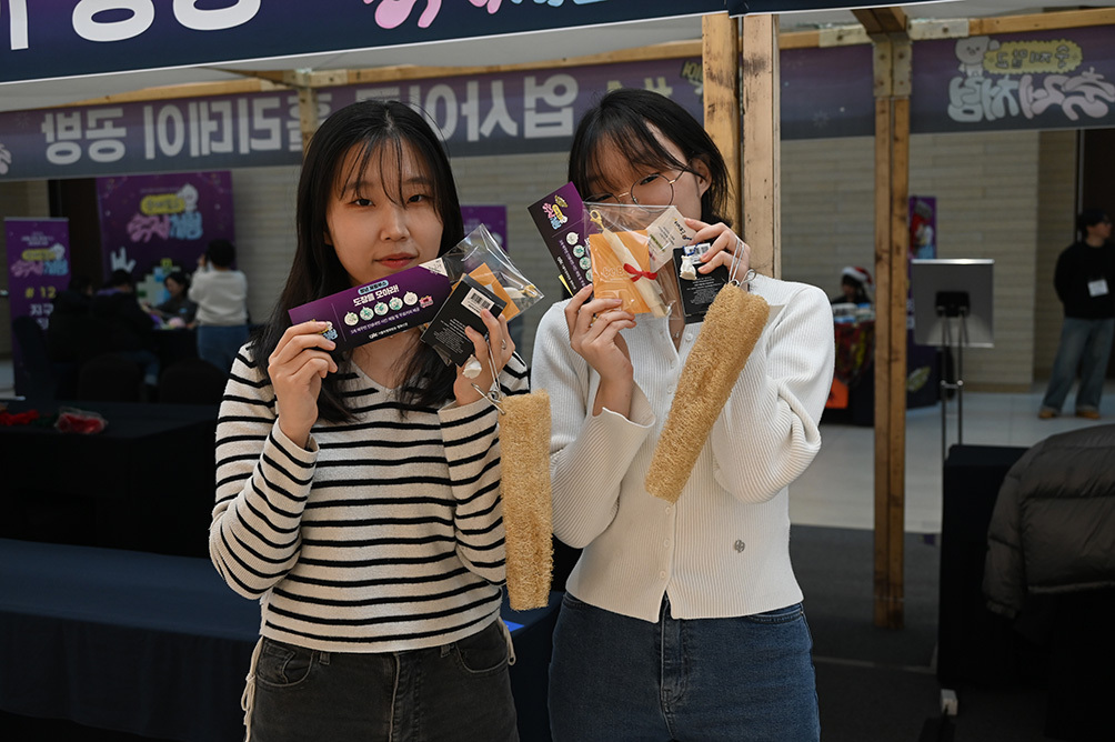 숙제말고 축제처럼 청년콘서트 체험부스에서 천수연(왼쪽, 가톨릭대 간호학과)씨 등이 자신이 만든 수세미를 들어보이고 있다.