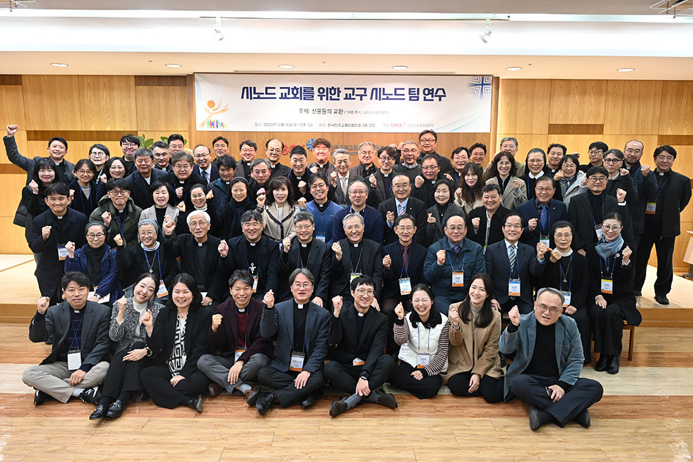 한국 교회에 교구 시노드 팀이 구성된 이후 처음으로 전국 교구 시노드 담당 사제와 수도자·평신도들이 한자리에 모였다. ‘시노드 교회를 위한 교구 시노드 팀 연수’는 12월 16일 한국천주교중앙협의회 4층 강당에서 ‘선물들의 교환’(「최종 문서」 120~123항)을 주제로 열렸으며, 시노드 이행 단계에 대한 본격적인 논의의 시간이었다.