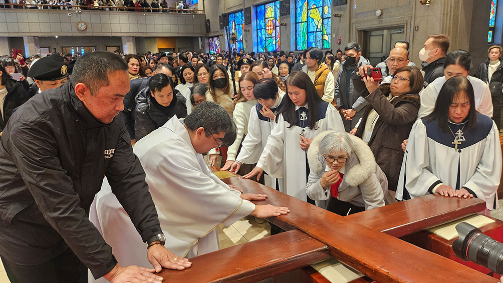 미사 후에는 십자가 경배가 이어졌다. 자리가 모자랄 정도로 성당을 가득 메운 필리핀 신자들은 십자가를 어루만지며 기도를 바쳤다. 이날 한국 청년들과 함께 WYD 십자가를 제대에 설치한 론데일 부타이(요한, 28)씨는 “주님 은총과 축복을 가득 받은 기분”이라고 말했다. 미사를 주례한 아르빈 모스케다(필리핀 선교회) 신부는 “2027 서울 세계청년대회를 준비하는 한국 청년들이 WYD 상징물과 함께 우리 공동체를 방문해줘 감사하다”고 인사했다.