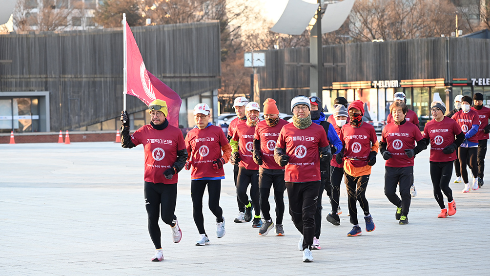 ‘붉은 말의 해’ 2026년 병오년(丙午年) 새해 첫 토요일인 3일 오전. 붉은 말을 닮은 러너들이 강추위를 뚫고 힘차게 달렸다. 빨간 티셔츠를 입은 서울대교구 가톨릭마라톤동호회 회원 30여 명은 영하 10도의 추위 속에 서울 송파구 올림픽공원 세계평화의문 앞을 출발해 잠실대교와 올림픽대교를 찍고 돌아오는 10㎞ 구간을 거뜬히 왕복했다.