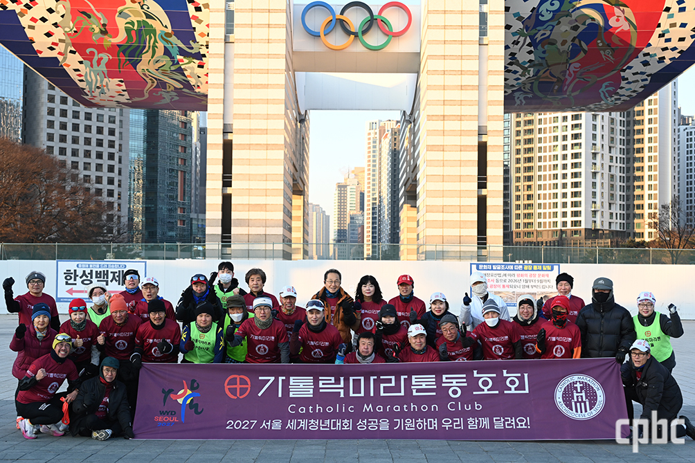 서울대교구 가톨릭마라톤동호회(이하 가마동, 회장 고영국)가 3일 ‘달리는 2027 서울 세계청년대회 홍보대사’가 됐다. 뒷면에 이같은 문구가 적힌 자체 제작 유니폼을 입고 서울 송파구 올림픽공원 일대에서 신년 맞이 10㎞ 달리기에 나선 것. 가마동은 2027 서울 세계청년대회를 널리 알리고자 지난해 11월 ‘2025 MBN 서울마라톤’을 시작으로 모든 훈련과 대회 출전마다 이 유니폼을 착용하고 있다.