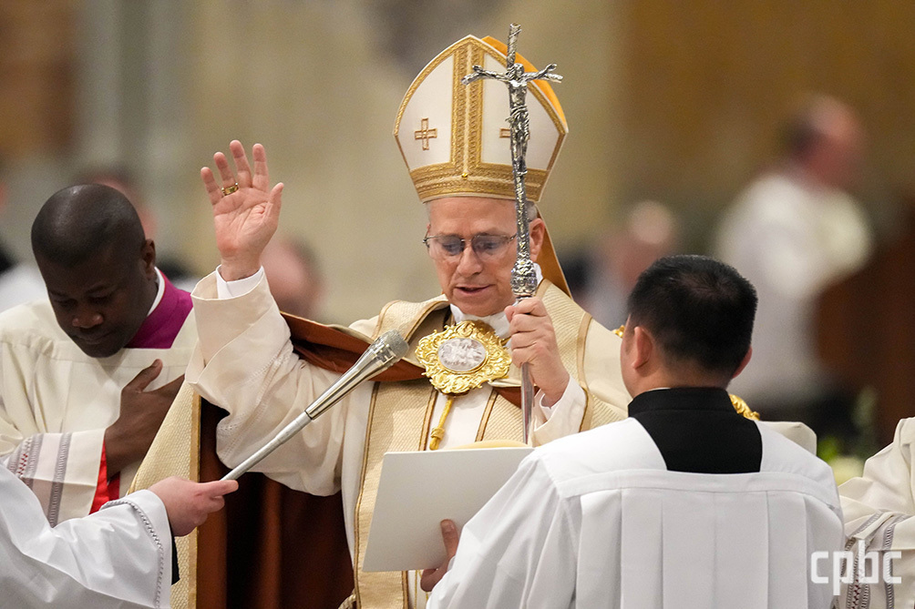 레오 14세 교황이 1월 25일 로마 성 바오로대성전에서 성 바오로 사도 회심 축일 저녁 기도를 주례하며 참석자들을 축복하고 있다. OSV