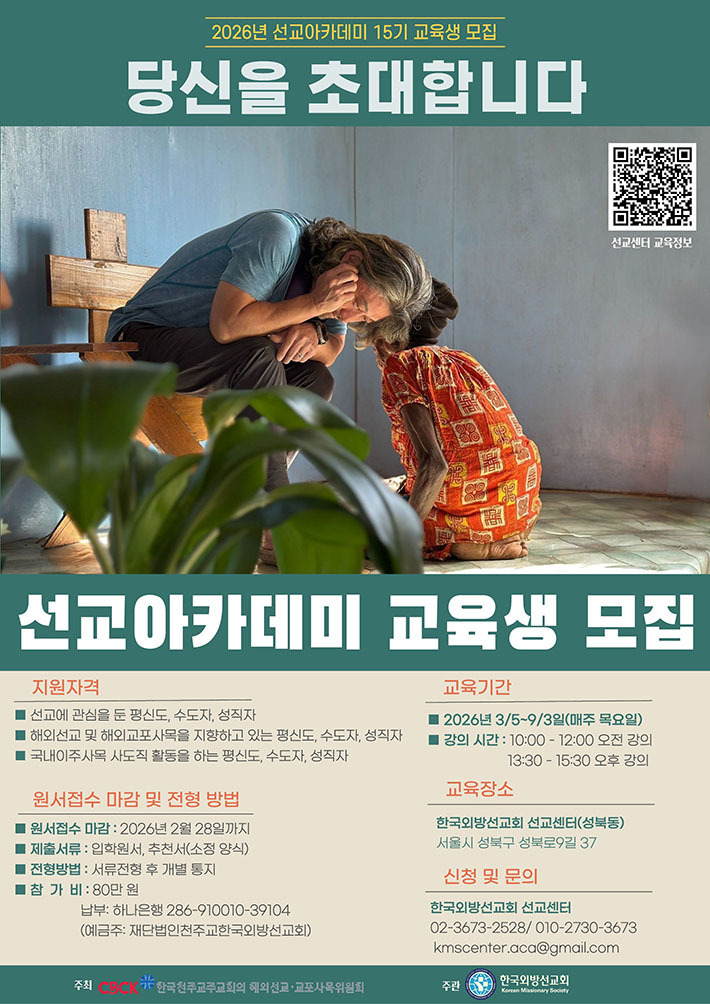 주교회의 해외선교·교포사목위원회가 ‘2026 선교아카데미 15기 교육생’을 모집한다.