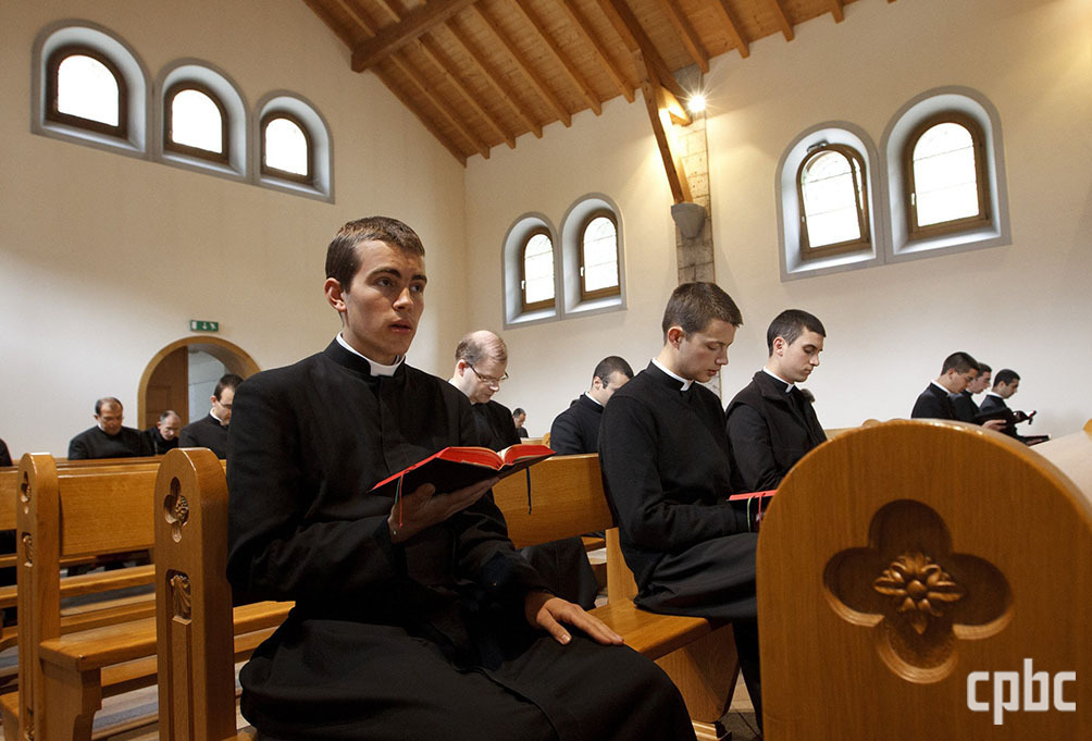 성 비오 10세회 신학교 신학생들이 스위스 한 성당에서 기도하고 있다. OSV