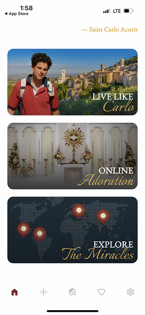 미국 필라델피아대교구 펜실베이니아주 멜번의 카를로 아쿠티스 성지 및 성체 만남 센터는 2월 14일 아쿠티스 성인에게 영감을 받아 제작한 새 모바일 애플리케이션 ‘성 카를로 아쿠티스 세계 성체의 기적’을 출시했다고 밝혔다. 아쿠티스 성인이 생전 전 세계에서 일어난 성체 기적과 성모 마리아 발현을 기록한 웹사이트를 스마트폰 앱으로도 볼 수 있게 된 것이다.