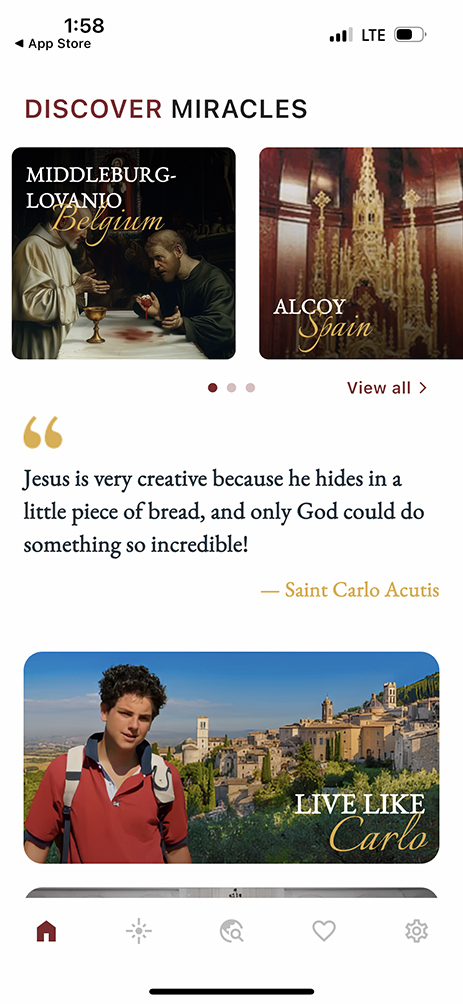 인터넷의 수호성인 카를로 아쿠티스가 생전 기록한 성체 기적 기록들을 스마트폰으로도 만나볼 수 있게 됐다.