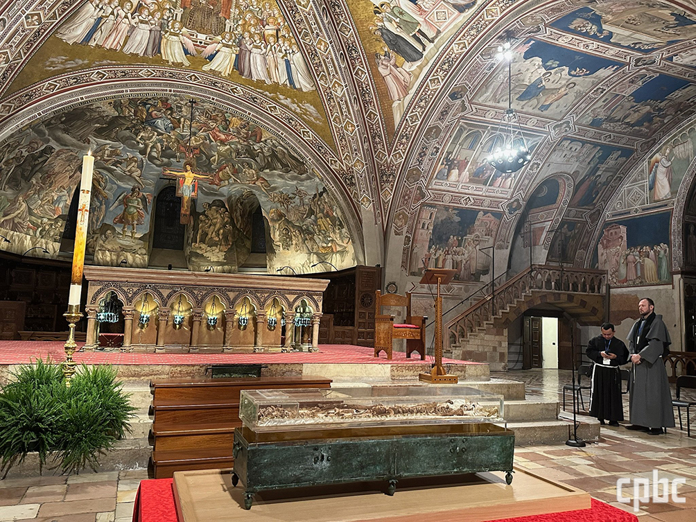이탈리아 아시시의 성 프란치스코 대성전에 공개된 성 프란치스코의 유해. OSV