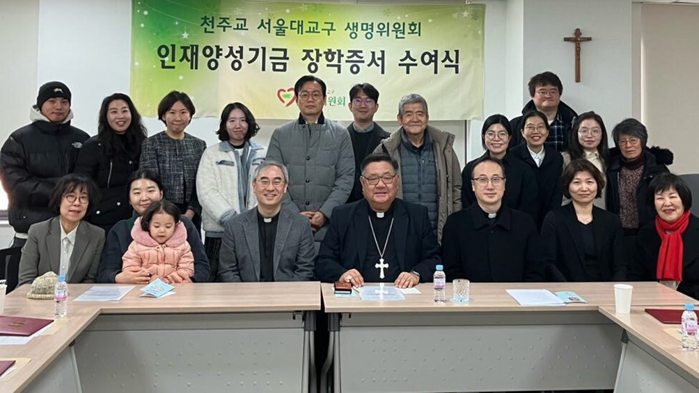 서울대교구 생명위원회 인재양성기금위원회(위원장 이경상 주교)는 2월 7일 교구청에서 ‘2026년 전기 인재양성기금 장학증서 수여식’을 열고, 생명문화 확산에 이바지하는 석·박사 과정 학생 12명에게 장학증서를 전달했다.