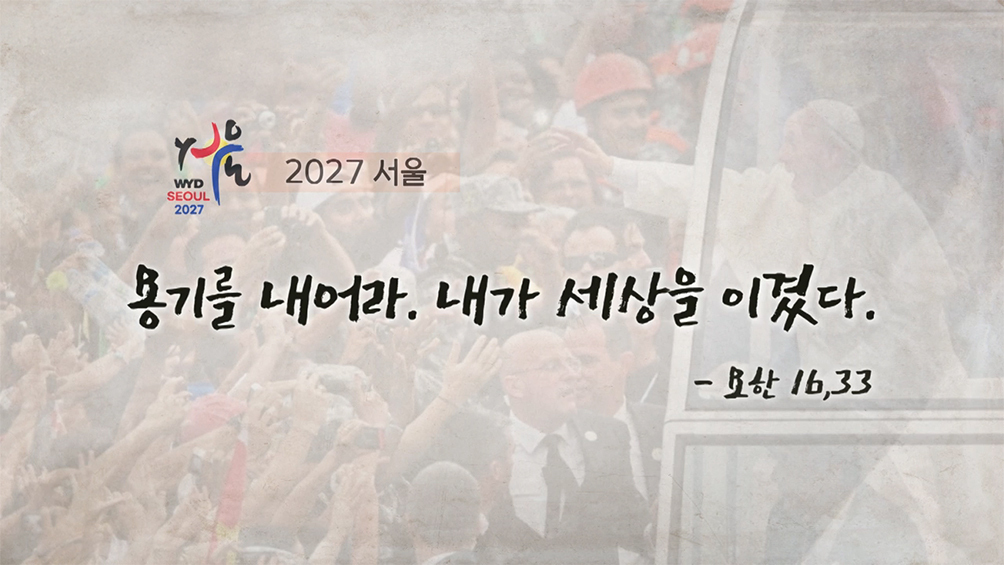 프란치스코 교황님께서 2027 서울 WYD를 위해 선택하신 주제 성구는 “용기를 내어라. 내가 세상을 이겼다”(요한 16,33)입니다. 이는 한국의 순교 성인들이 신앙을 증거하기 위해 보여준 용기를 본받아 젊은이들이 온갖 형태의 불의와 싸워 이겨낼 수 있는 힘과 용기를 갖게 되길 바라셨기 때문일 것입니다.