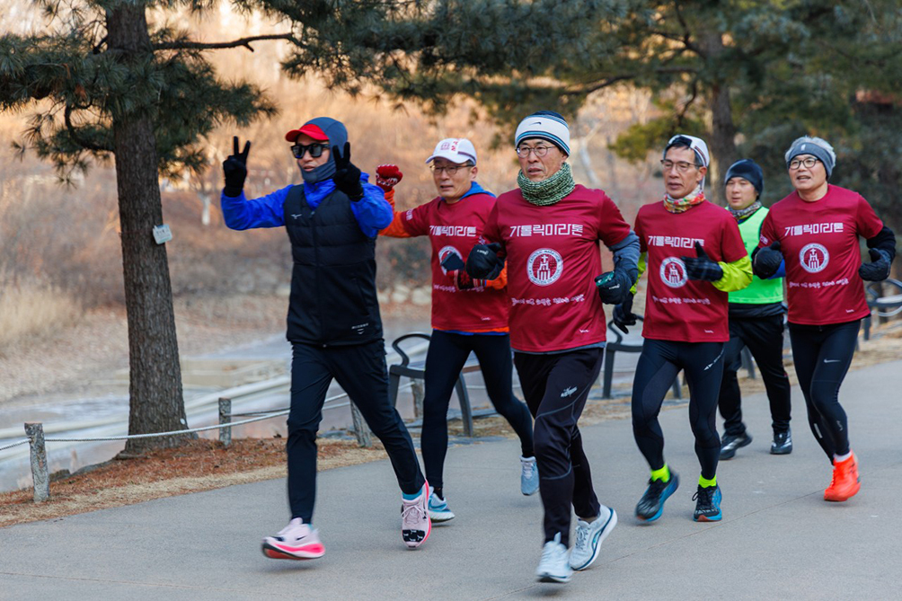 서울가톨릭마라톤동호회 회원들이 힘차게 달리고 있다. 고용국 위원장은 “스포츠를 통해 신앙을 나누고 공동체를 회복하겠다”고 약속했다. 고용국 위원장 제공