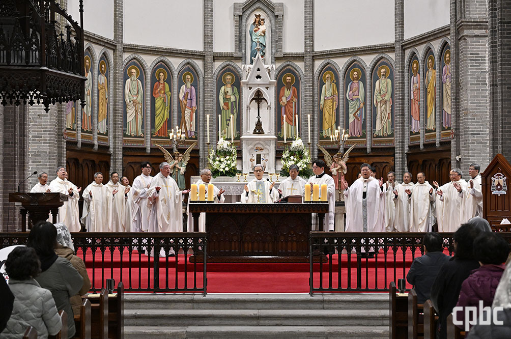 레오 14세 교황 선출 1주년 기념미사가 11일 서울 주교좌 명동대성당에서 주교회의 의장 이용훈 주교를 비롯한 한국 주교단과 염수정 추기경·주한 교황대사 조반니 가스파리 대주교 공동집전으로 봉헌되고 있다.