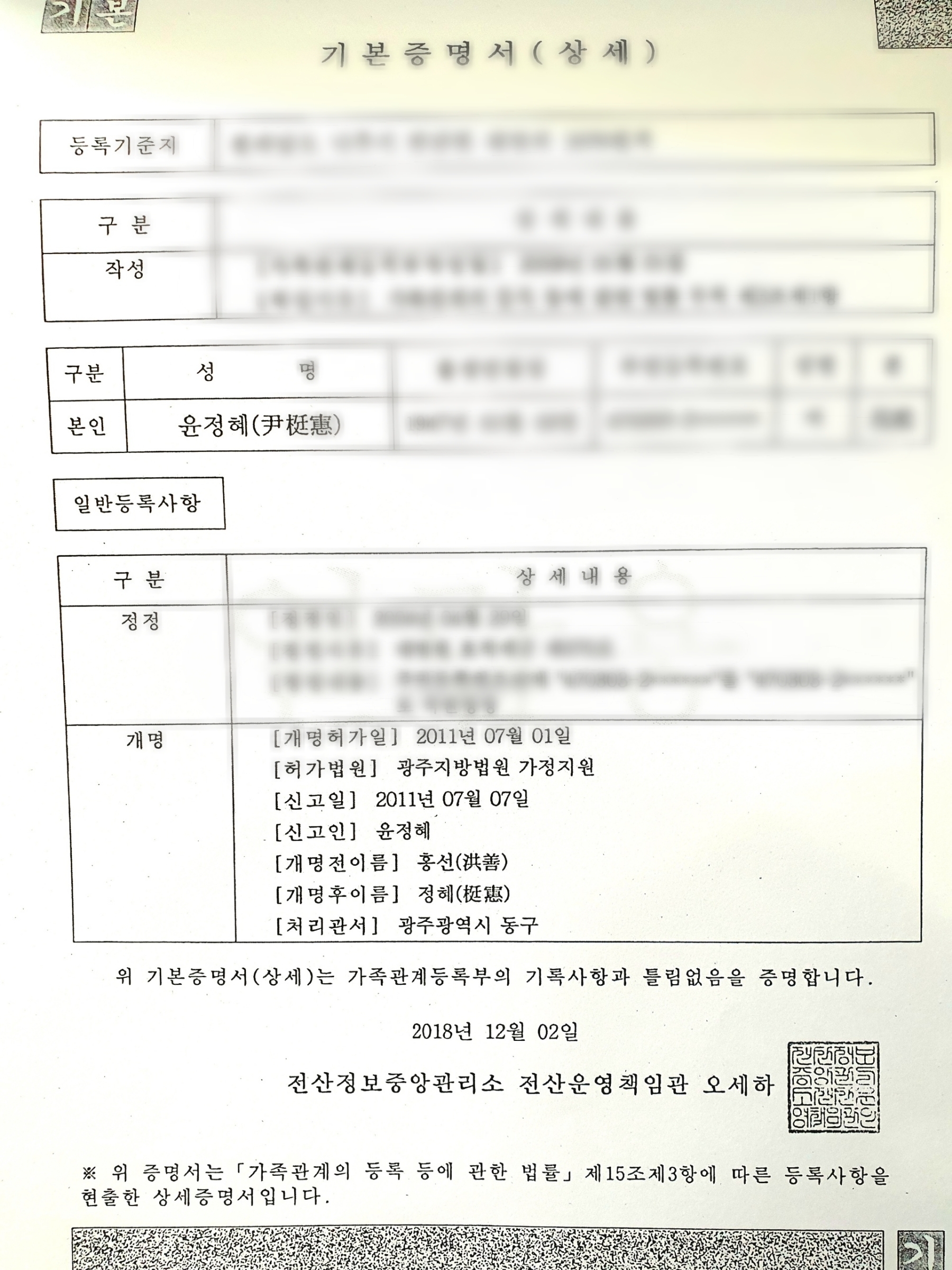 윤홍선은 사라졌다. 대신 윤정혜라는 이름이 남았다.