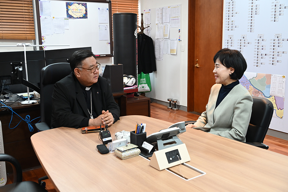 전 의원은 인터뷰에 앞서 이 주교와 환담했다. 전 의원은 “(민주당 내) 유일한 신자 후보로서 서울 WYD 개최에 막중한 책임감을 느낀다”면서 “시장이 된다면 책임지고 행사 준비에 앞장서겠다”고 말했다. 이 주교는 “서울 WYD의 성공적 개최 역시 중요하지만 정치인으로서 인간 존엄성을 지키고, 특히 소외되고 고통받는 사람을 배려하는 것이 무엇보다 중요하다”며 “연민의 마음으로 정치를 해주길 바란다”고 화답했다.