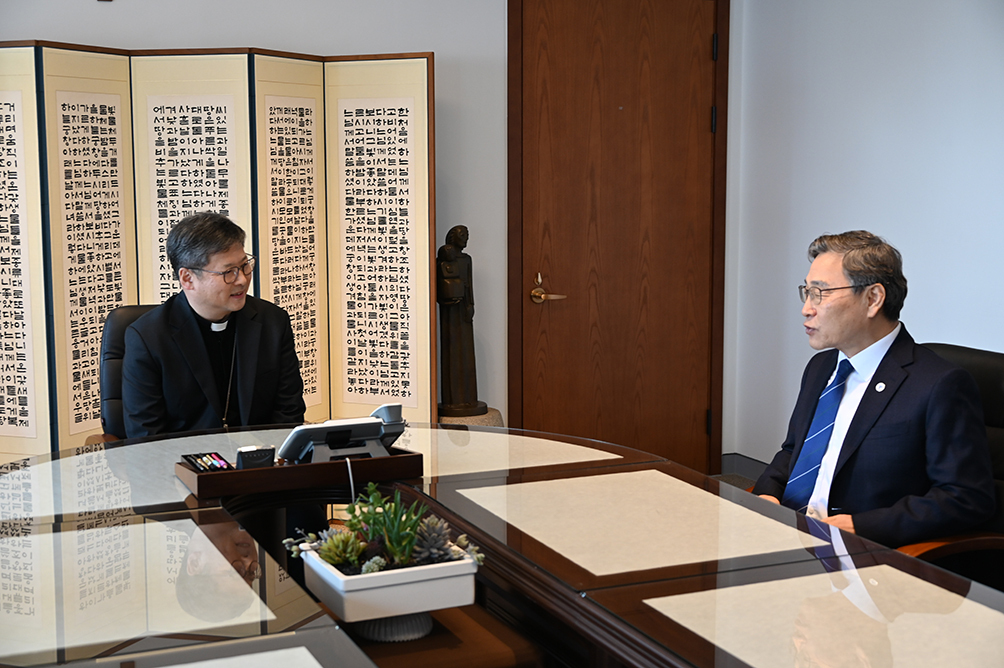 서울대교구장 정순택 대주교가 정근식 서울시교육감에게 2027 서울 세계청년대회(World Youth Day) 기간 서울시교육청의 협력을 당부했다.