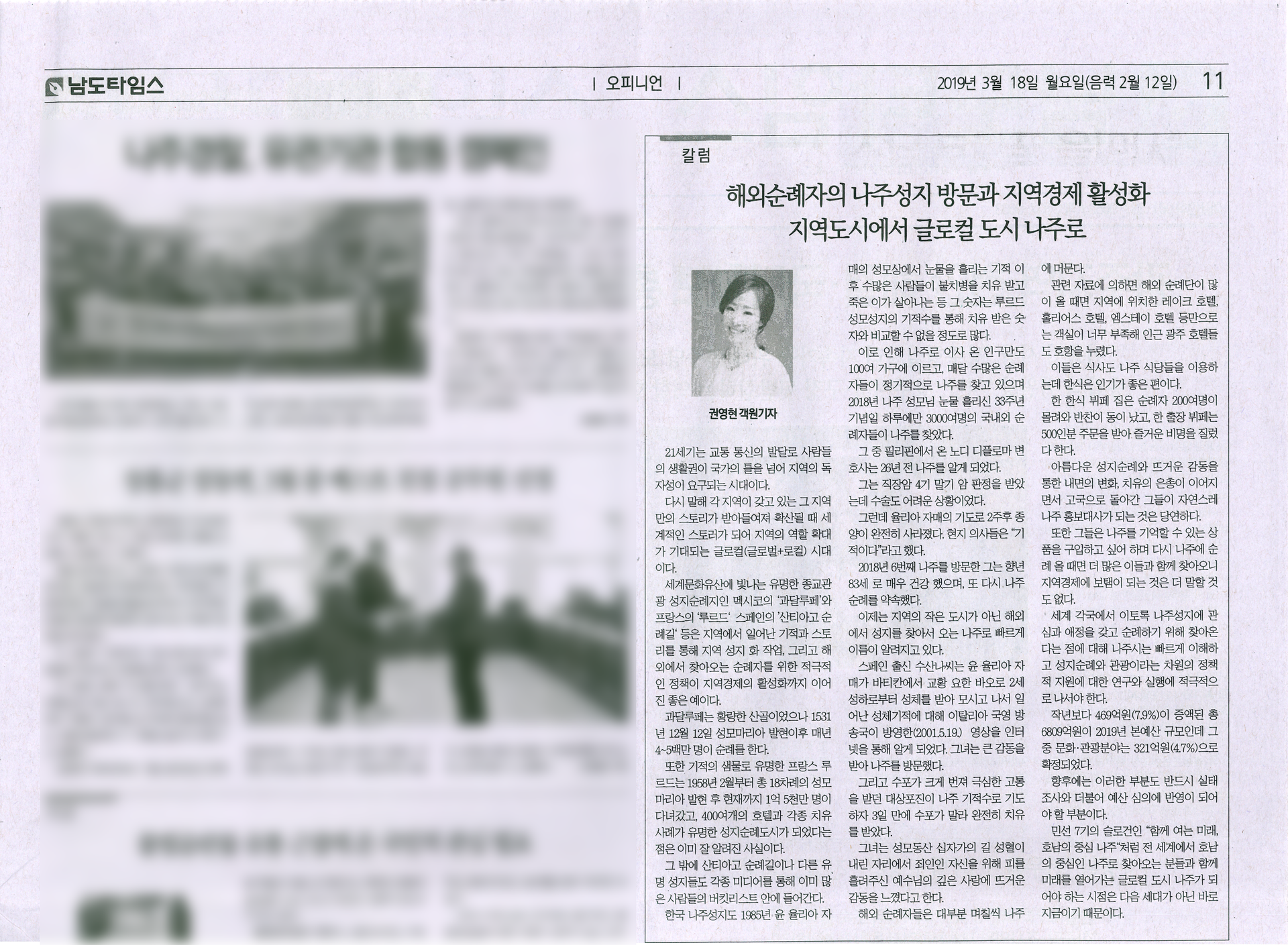 과거 '남도타임스' 매체에서 객원 기자로 활동한 권영현 국민의힘 대변인의 칼럼. 남도타임스 캡처