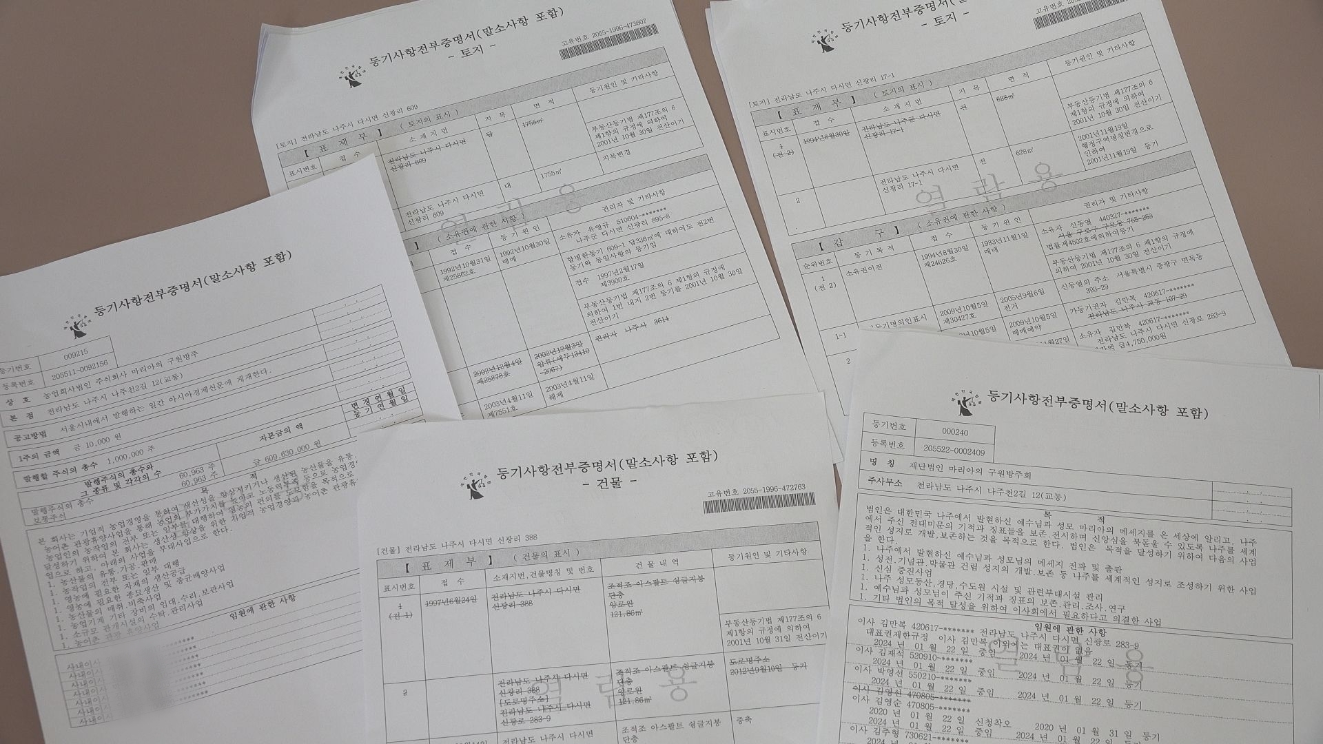 (재)마리아의구원방주회 관련 등기부등본 자료