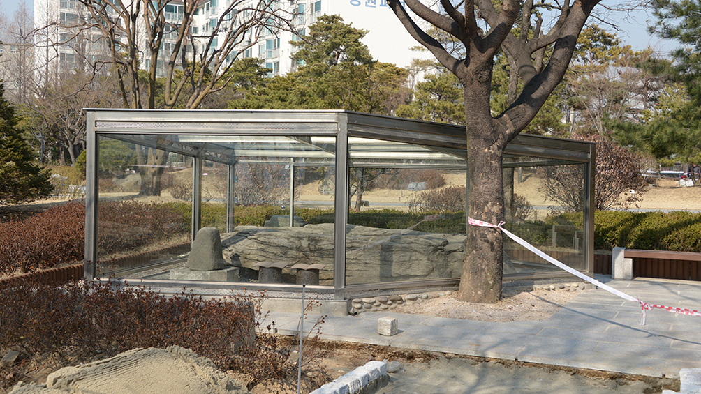 이전 논의는 새마을운동이 한창이던 1972년 12월 시작됐다. 당시 대전교구 온양본당 조병식(프란치스코) 회장은 바위의 훼손을 우려해 절두산순교자기념관장 박희봉 신부에게 원형 보존을 위한 이전을 건의했다. 박 신부는 현장을 살피고 바위 이전을 검토했으나, 한국교회사연구소 소장 최석우 몬시뇰(당시 신부)의 의견에 따라 이전을 보류하고 ‘현지 보존’하는 것으로 결정했다.