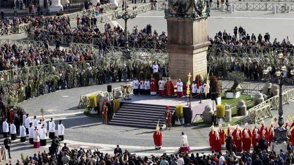 레오 14세 교황이 2026년 3월 29일 바티칸 성 베드로 광장에서 성지주일 미사를 집전하고 있다. OSV