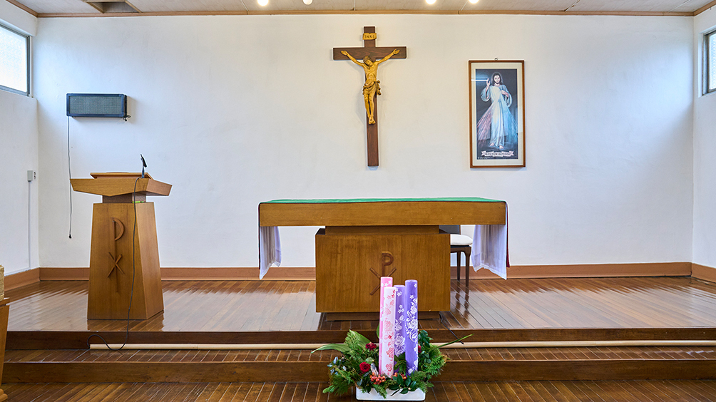 삼봉공소 제단. 나무 제대를 중심으로 특별한 장식없이 단아하게 꾸며져 있다. 기사 내용과는 무관