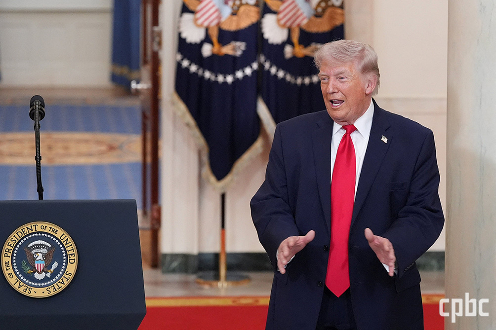 도널드 트럼프 미국 대통령이 1일 백악관에서 미국·이스라엘과 이란의 전쟁에 대해 이야기하고 있다.OSV