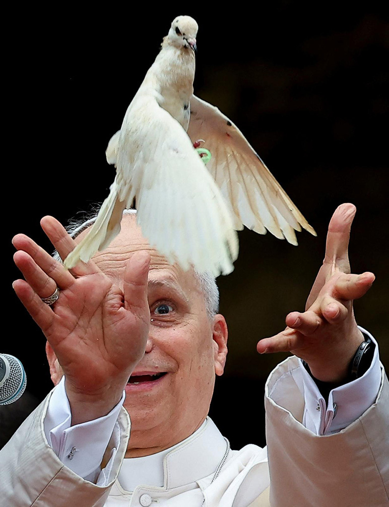레오 14세 교황이 16일 카메룬 바멘다 성 요셉 대성당에서 열린 평화 모임에 참석한 후 평화를 상징하는 비둘기를 날려보내고 있다. OSV