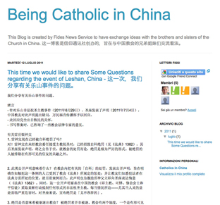 교황청 인류복음화성 산하 선교지 통신인 `피데스`가 12일 중국 신자들을 위해 개설한 블로그. 중국 가톨릭신자들과 생각을 나누고 특히 중국교회와 관련한 교황청 입장을 사목적 측면에서 신자들에게 설명해 주기 위해 개설한 블로그다. 그러나 이 블로그는 교황청 사이트나 피데스 사이트로는 접속할 수 없다.